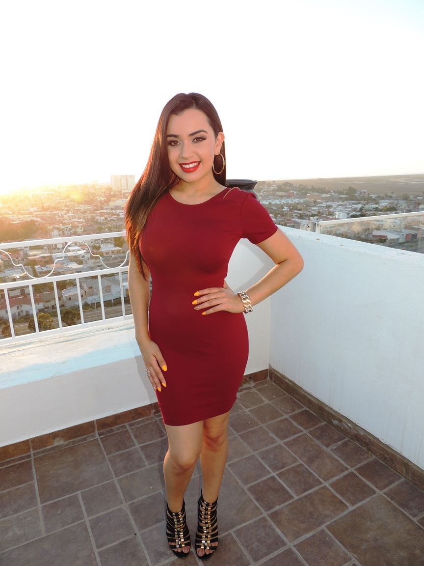 Color: Burgundy Back deep V gold zipper detail 62% Viscose 33% Nylon 5% Spandex Thick material Model wearing size Small, Height 5´3
