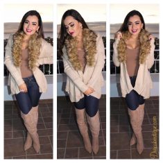 Faux Fur-Trim Cardigan