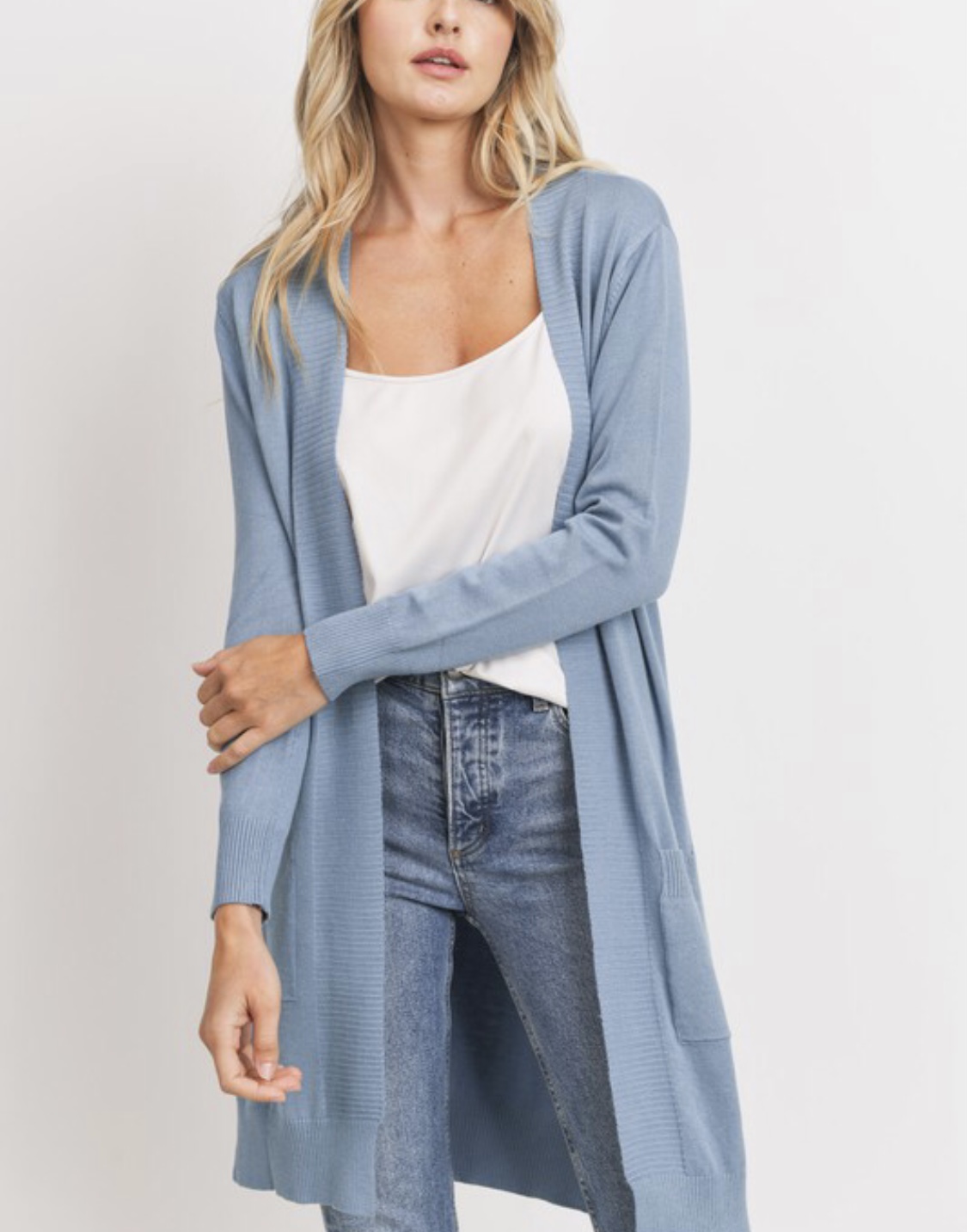 Jayla Pocketed Knit Cardigan (Blue/Grey)