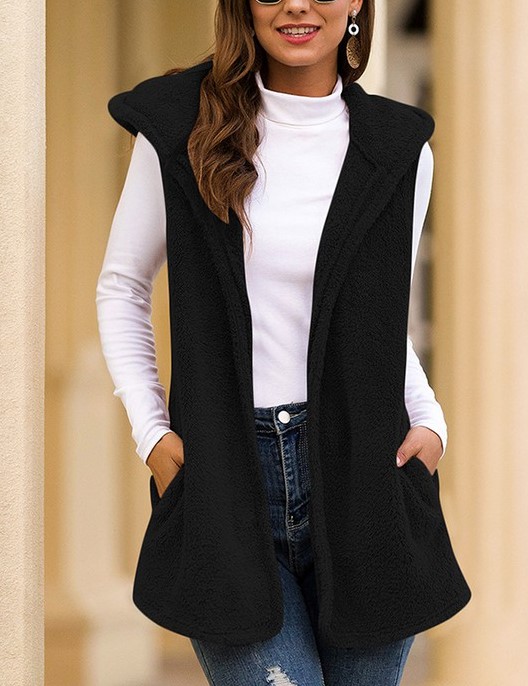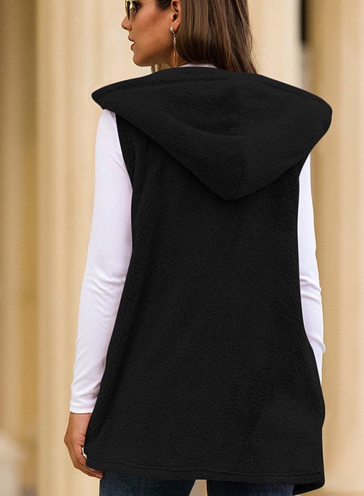 Suzie Sleeveless Faux-Shearling Cardigan (Black) quantity